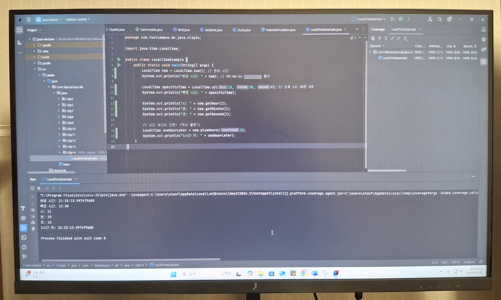 - plusDays(), minusMonths() 등: 날짜를 계산합니다. (주의! 기존 객체가 변하는 게 아니라 새 객체가 반환됩니다!)
