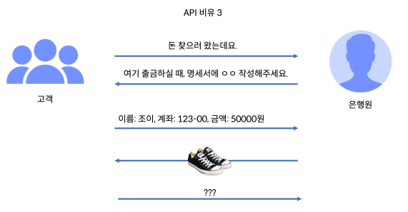 👟 이런! 고객은 돈을 요청했지만, 은행원은 뜬금없이 신발을 건네주었습니다. 이는 API 요청은 정상적으로 보냈으나, 서버에서 전혀 예상치 못한 엉뚱한 데이터나 오류를 응답으로 보내는 상황과 같습니다. 클라이언트는 매우 혼란스럽고, 서비스는 제대로 작동하지 않겠죠?